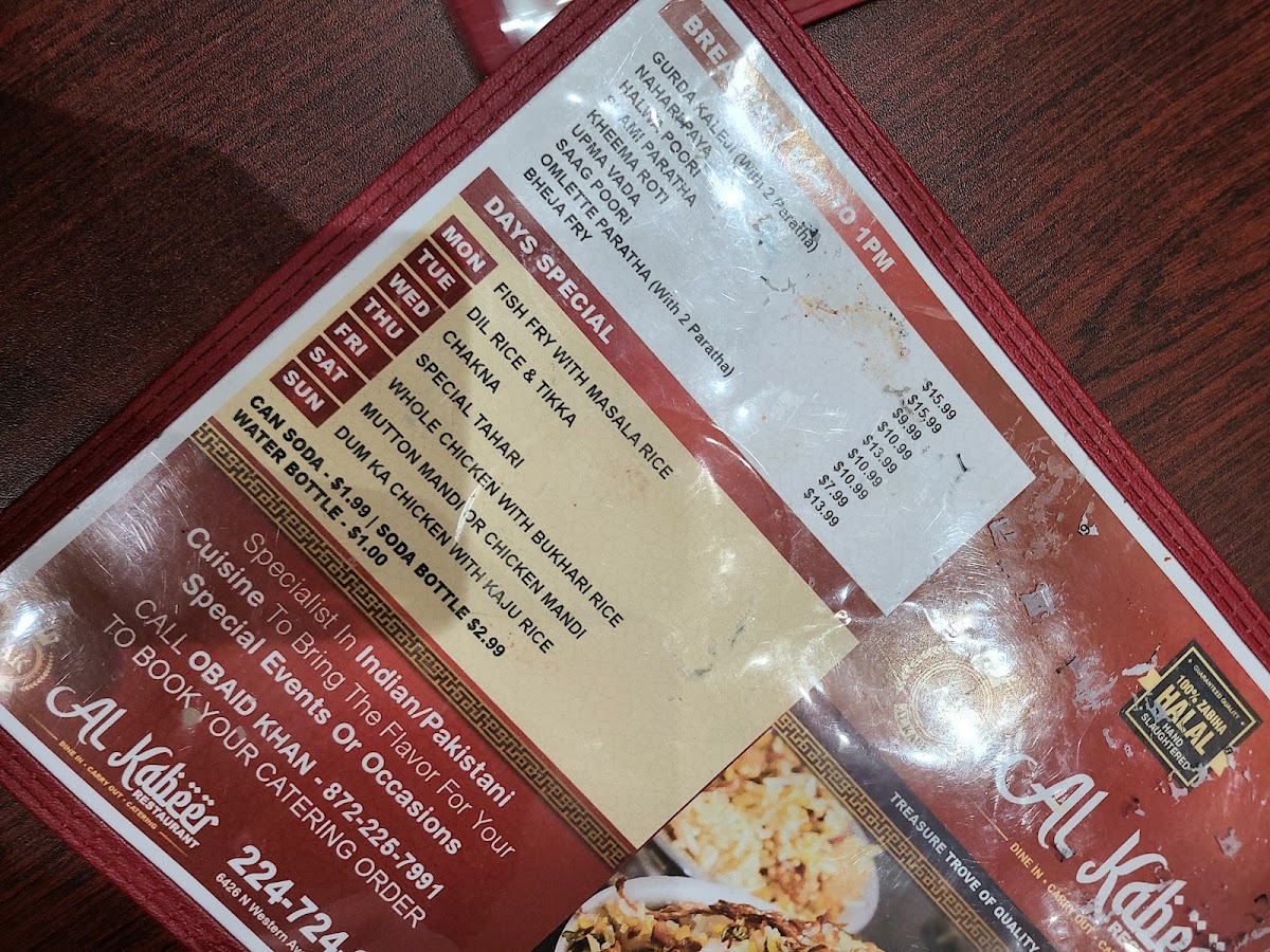 Step into a world of rich flavors and satisfying meals at Al - Kabeer Restaurant Menu. Located at 6426 N Western Ave in Chicago, this place brings the best of Middle Eastern cuisine to your table. With a wide array of dishes, there’s something to tempt every taste. From the classic kebabs to hearty stews, and fresh salads, each dish is prepared with care and authentic spices. The menu offers a variety of options, whether you're in the mood for something savory, spicy, or even a touch of sweetness. Every bite at Al - Kabeer is designed to transport you to a place of culinary delight. Enjoy a true feast that’s full of flavor and tradition!